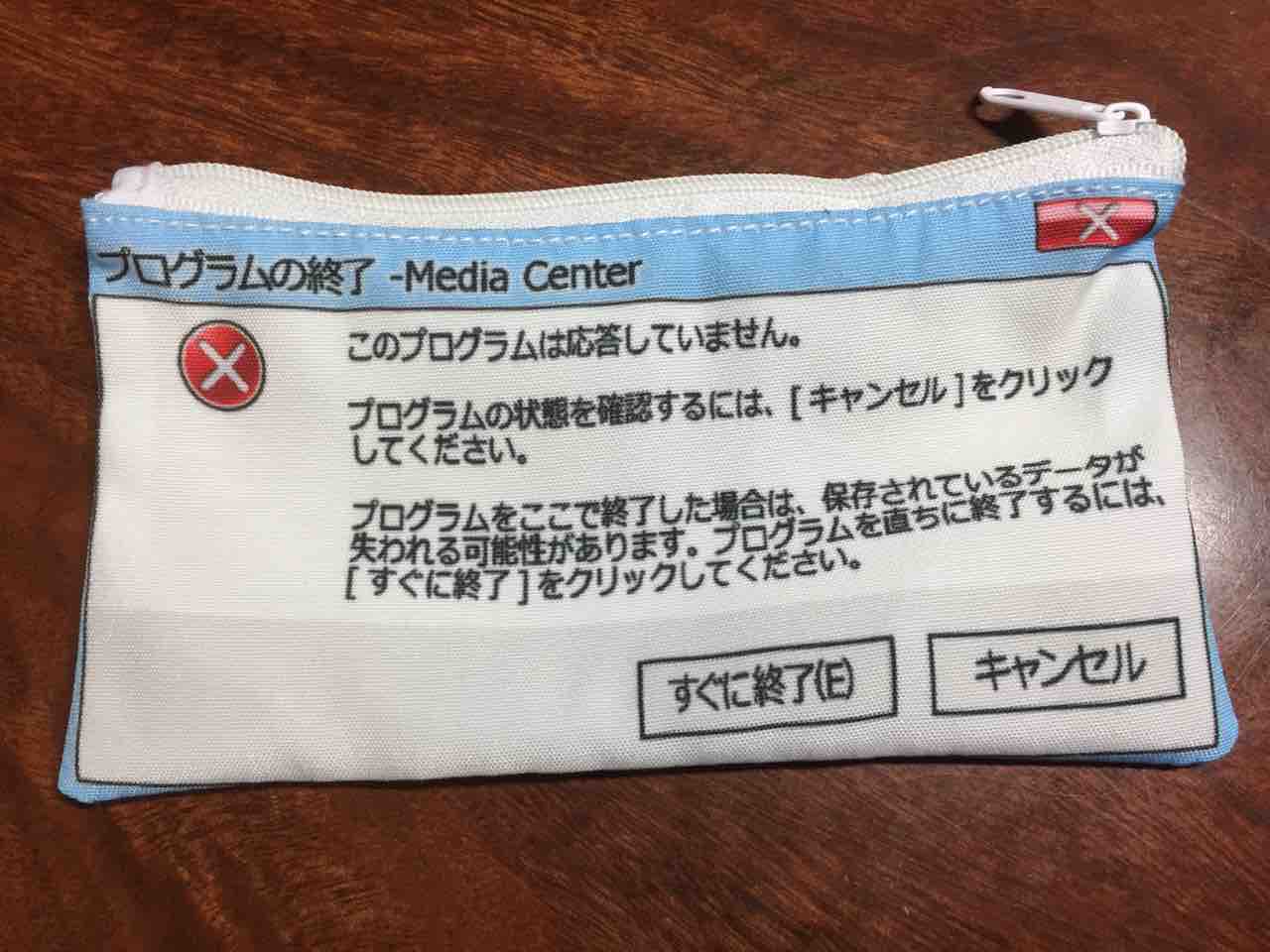 実際パソコン使ってて、これ出たら嫌ですよね。でもまあWindowsあるあるでネタとしては面白いですね、これをポーチにするセンスがよいです。