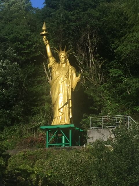 ある日、住宅がまばらな駅近くを歩いていると家の裏山に眩い自由の女神が!!