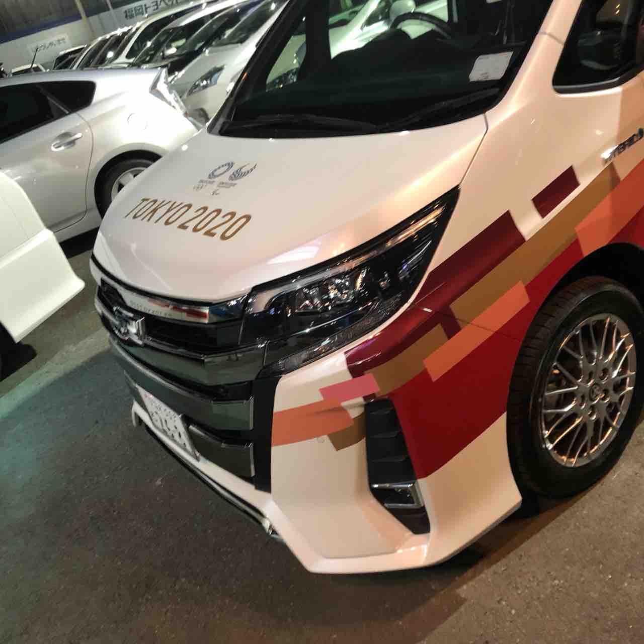 先日、久留米市内を歩いていたら東京オリンピックで使用された車両が、中古車販売店で販売されてました。