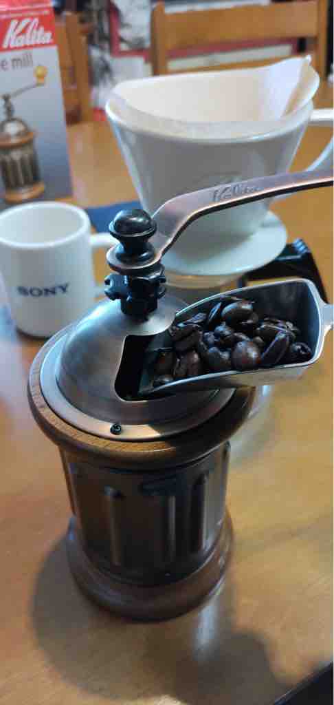 知り合いから良いコーヒー豆を頂きまして、電動ミルはあるのですが、せっかくなので手回し式でゆっくり香りを楽しもうと思いまして、買ってきました。